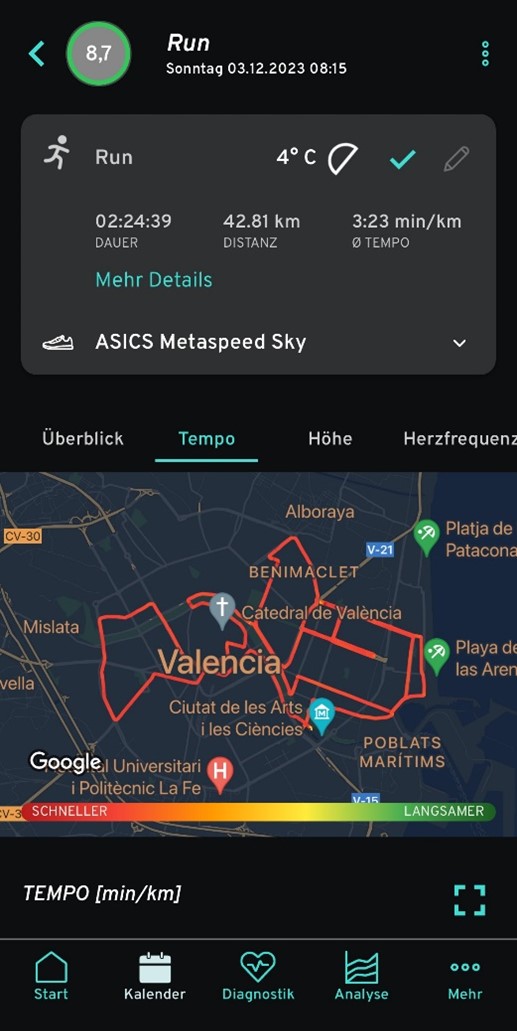Abbildung 3: Gesamtansicht Aktivität Valencia Marathon